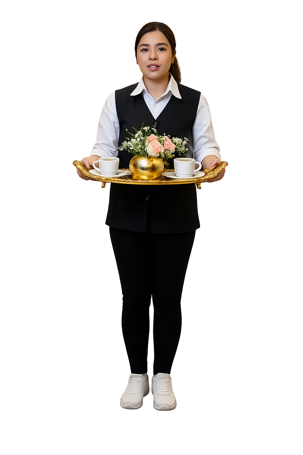 نمتلك فريقًا مدرّبًا على أعلى مستوى لتقديم خدمات الضيافة بأسلوب راقٍ، يضمن حسن الاستقبال، والتنظيم المثالي، وتجربة مريحة لضيوفكم.